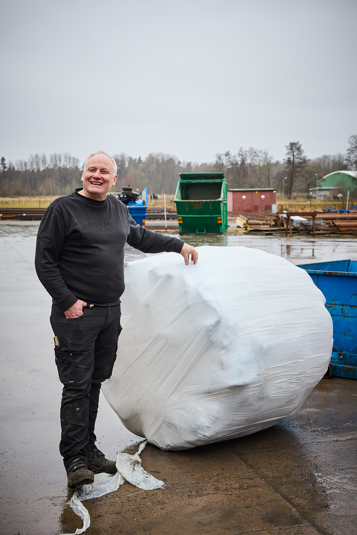 Bo Ansbjer heads the company Flexus Balasystem, which manufactures baling systems. The system compresses and packs waste, wood chips, plastic and car tires, feed material and much more into round bales to simplify transport and storage.