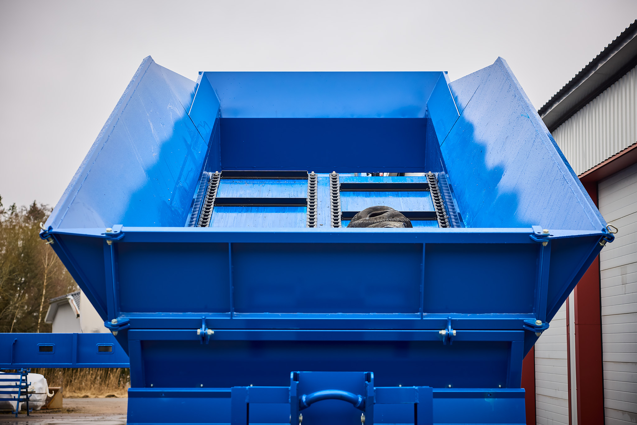 – The Fårbo Kohlswakedjan chain is a simple and reliable solution for moving material. The right tension is important, not tight, but just right. The links wear over time but it is easy to change the links.
